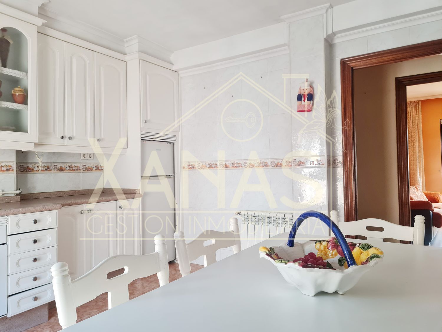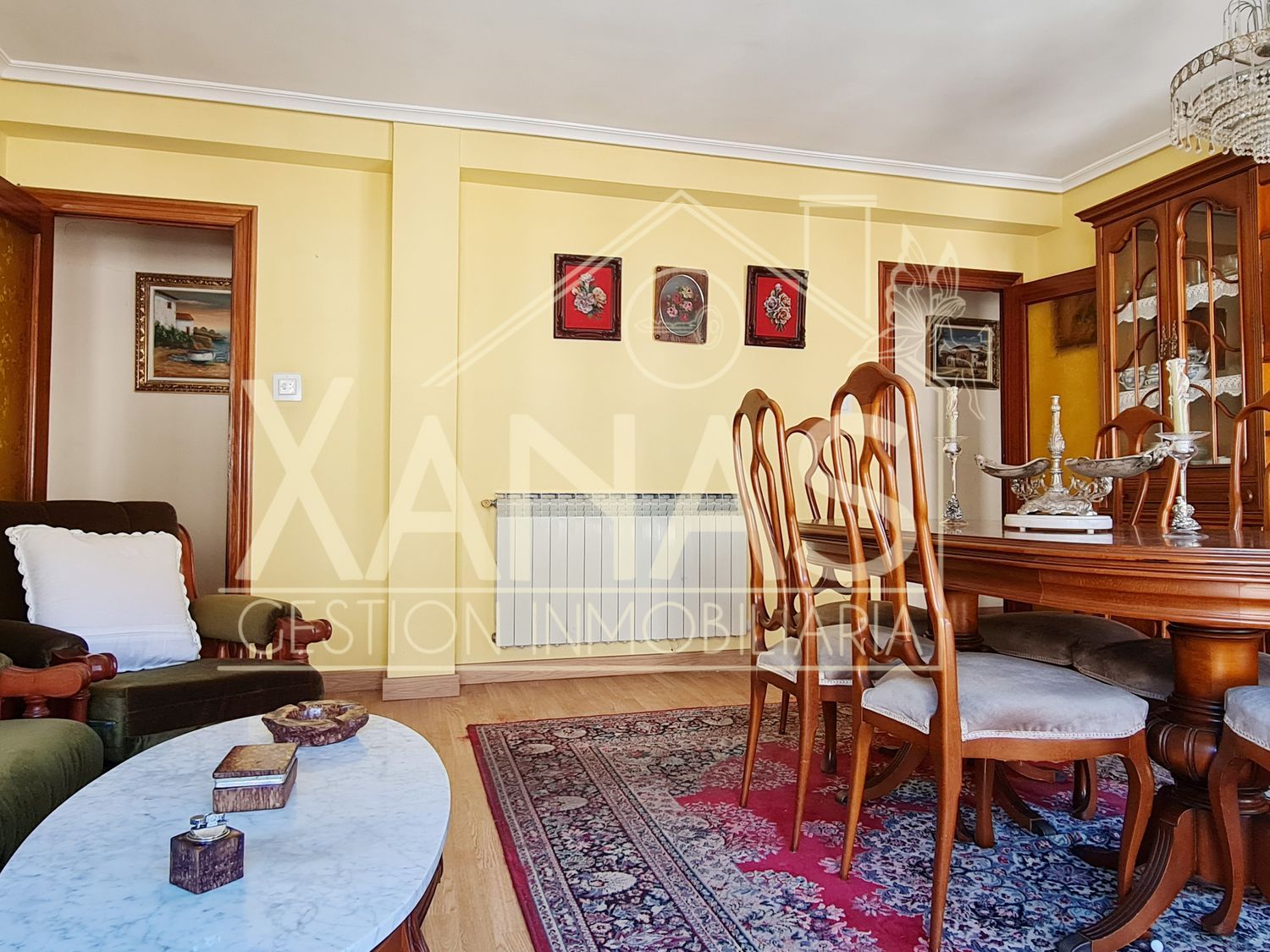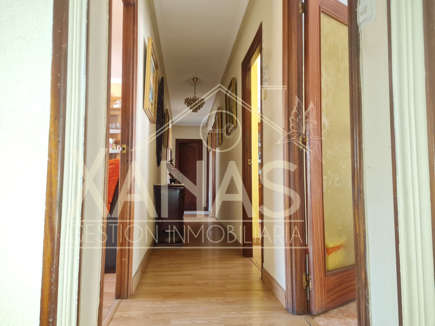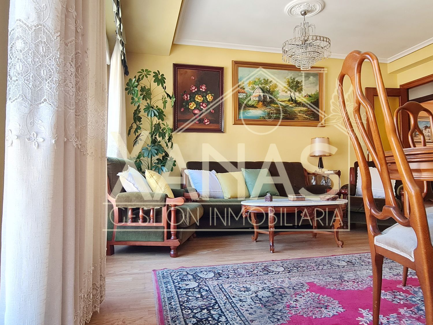Se trata de un piso de 103 m2 construidos, un hogar cómodo y bien distribuido. Se compone de vestíbulo, cocina independiente totalmente equipada, salón-comedor con terraza, otro salón con un gran ventanal, un cuarto de baño y dos dormitorios. En origen la distribución era diferente, ya que había CUATRO DORMITORIOS, que se trasformaron en el gran salón con dos entradas tirando el tabique que las separaba.