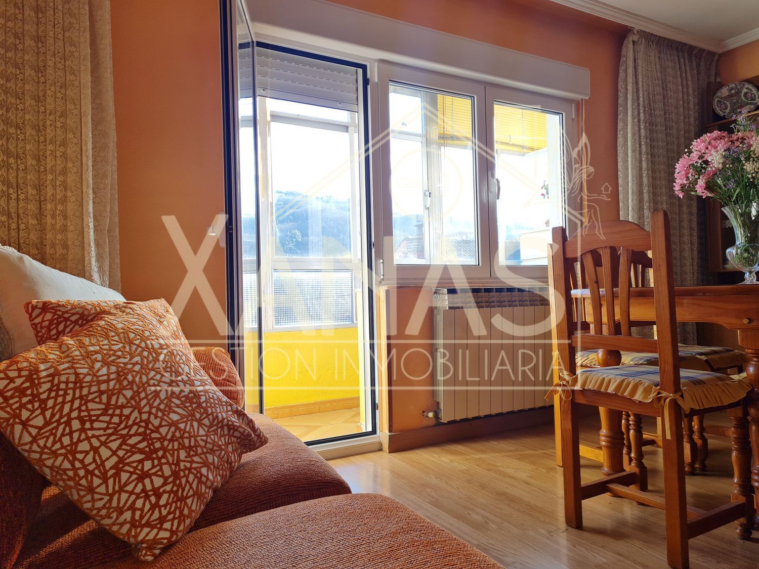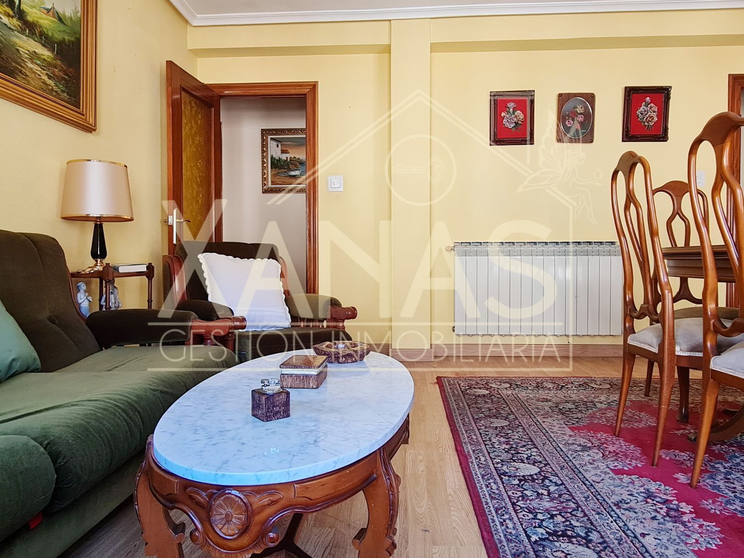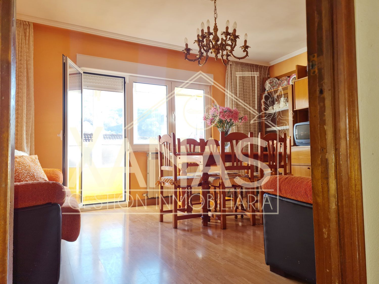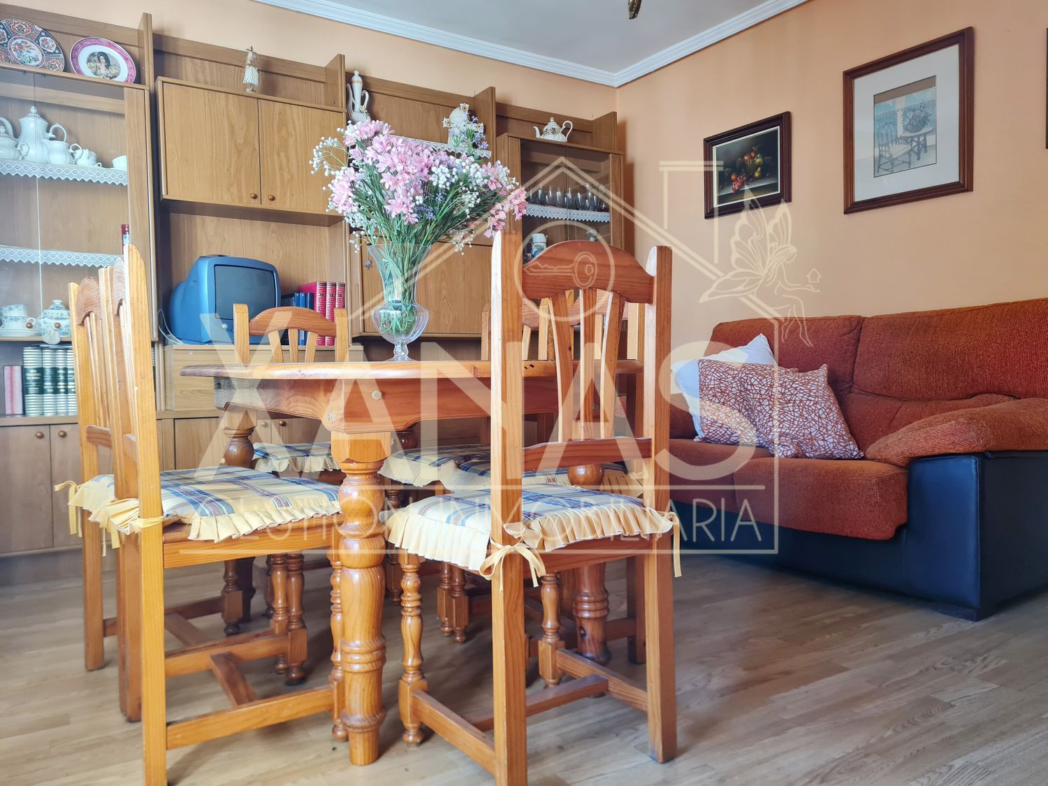 Se trata de un piso de 103 m2 construidos, un hogar cómodo y bien distribuido. Se compone de vestíbulo, cocina independiente totalmente equipada, salón-comedor con terraza, otro salón con un gran ventanal, un cuarto de baño y dos dormitorios. En origen la distribución era diferente, ya que había CUATRO DORMITORIOS, que se trasformaron en el gran salón con dos entradas tirando el tabique que las separaba.