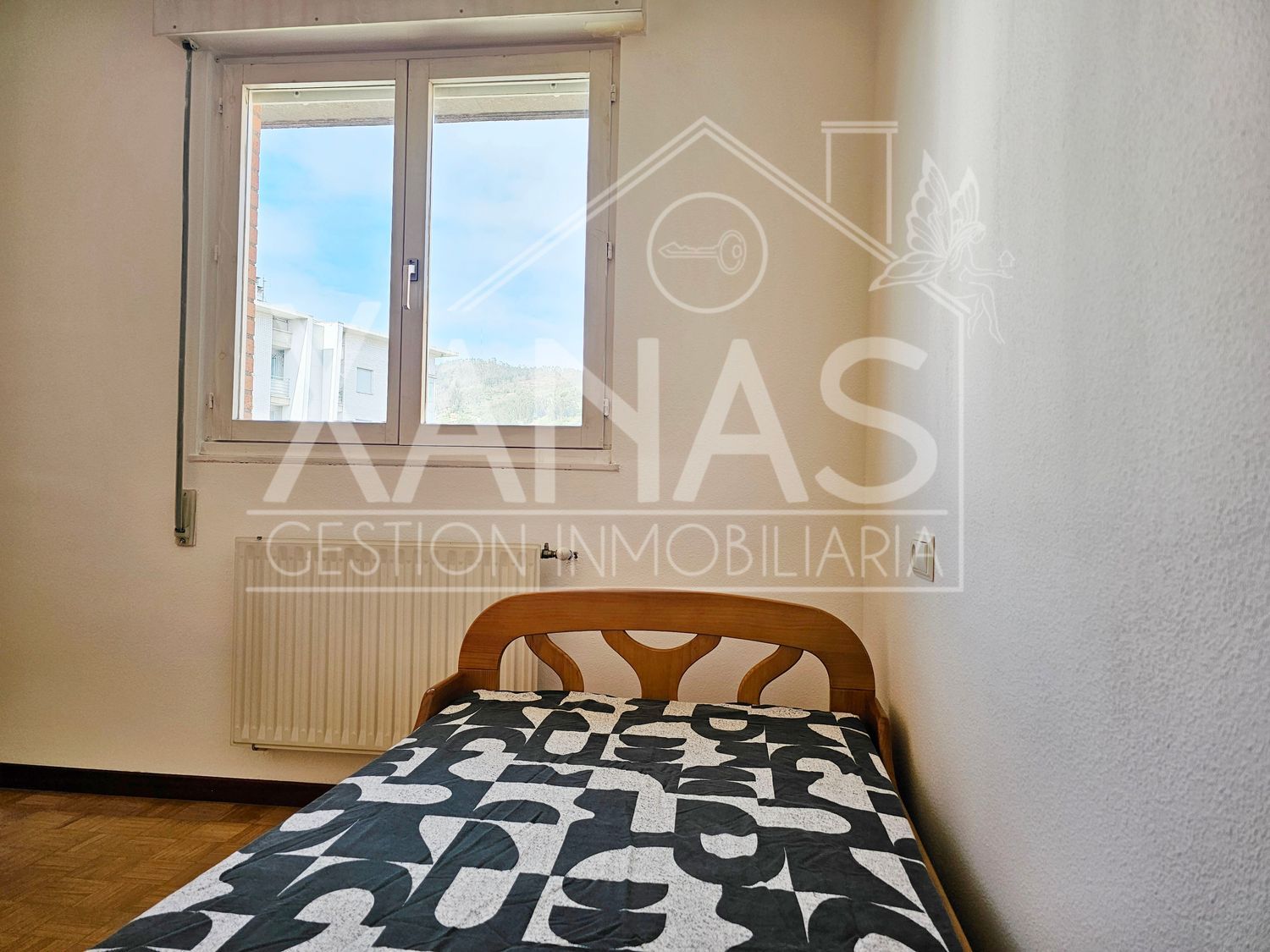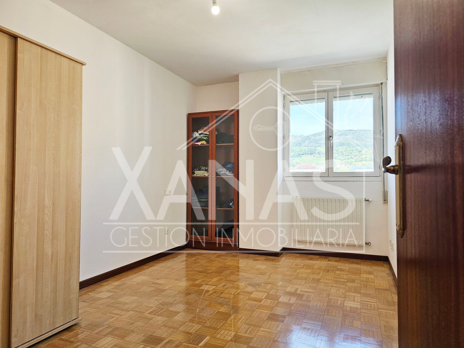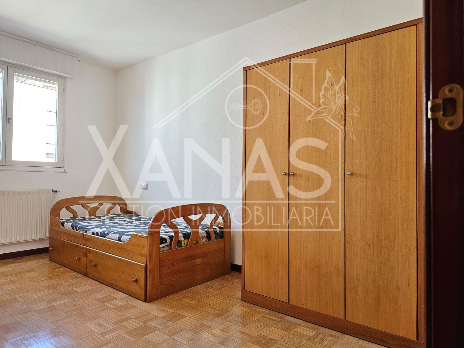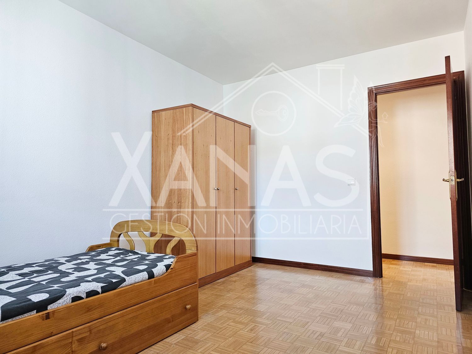 El pasillo nos lleva a sus tres dormitorios. Uno, el principal con armario empotrado, y mucha luz. Otros dos dormitorios más sencillos, de menor tamaño, y un cuarto de baño completo con ducha.