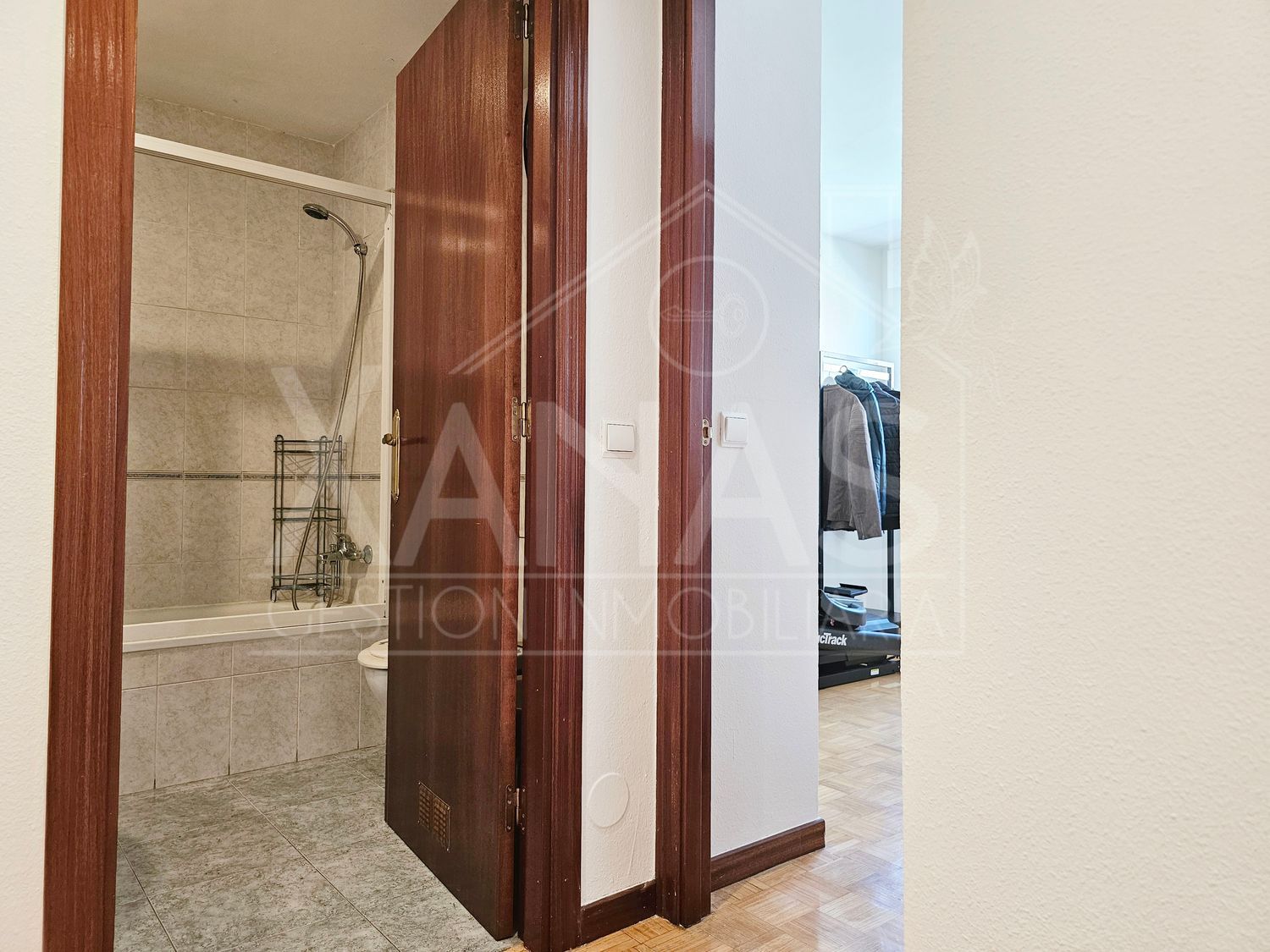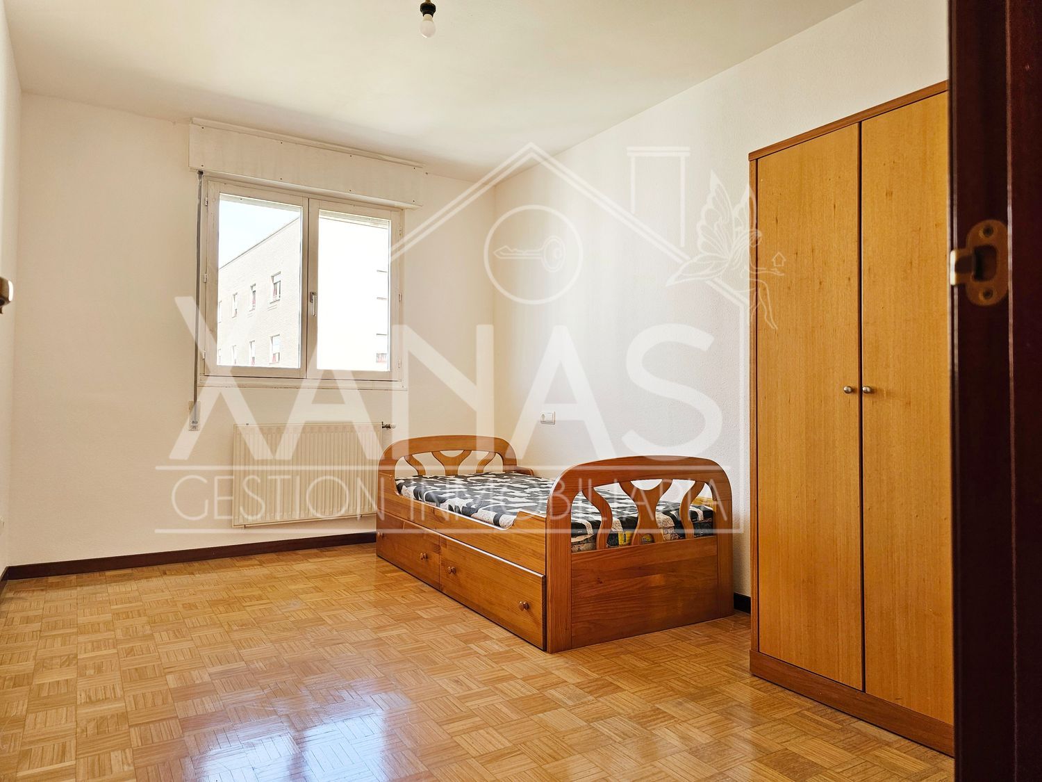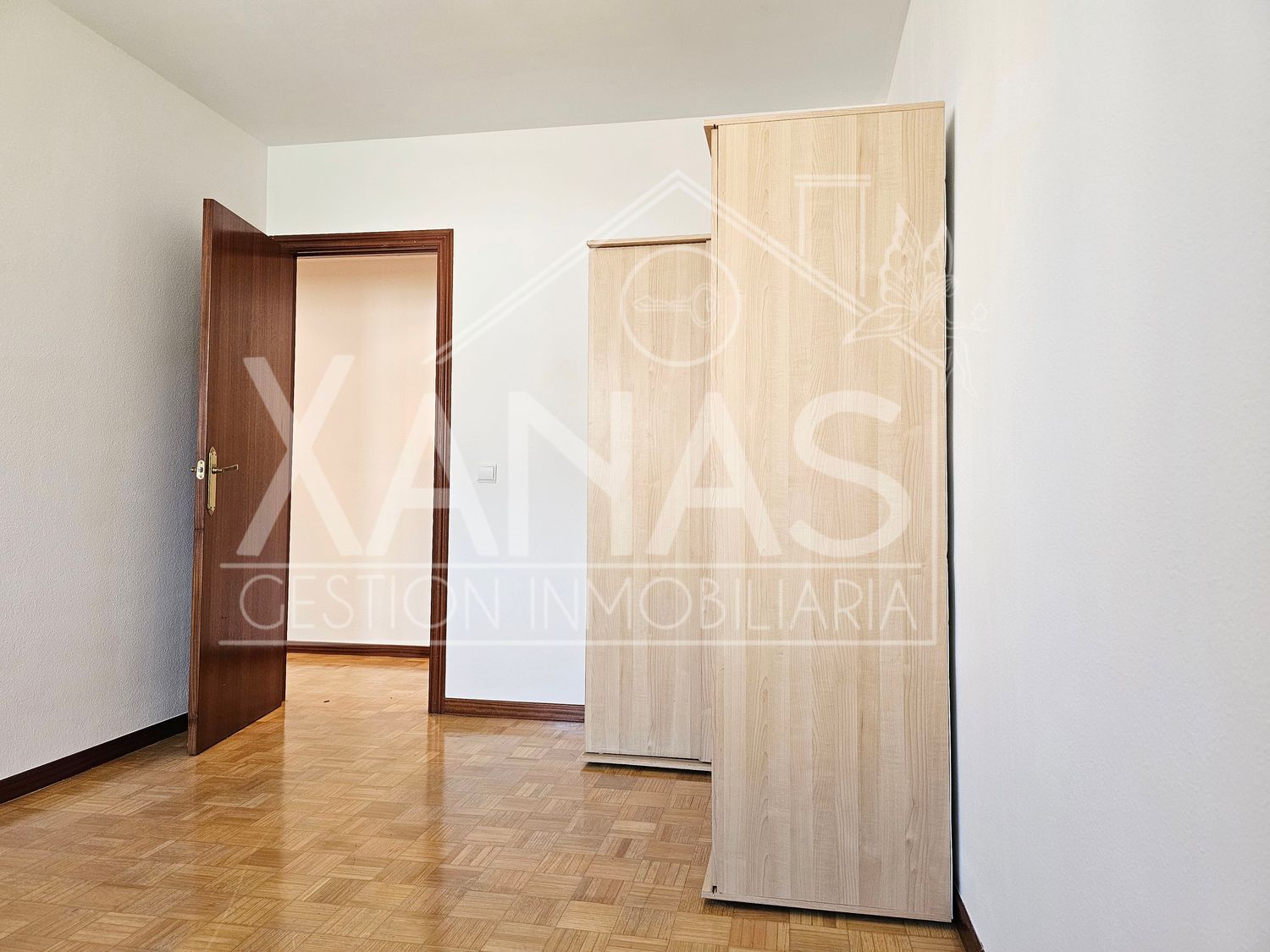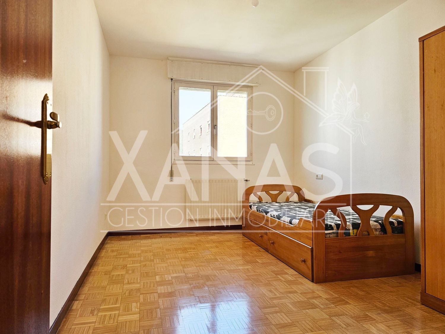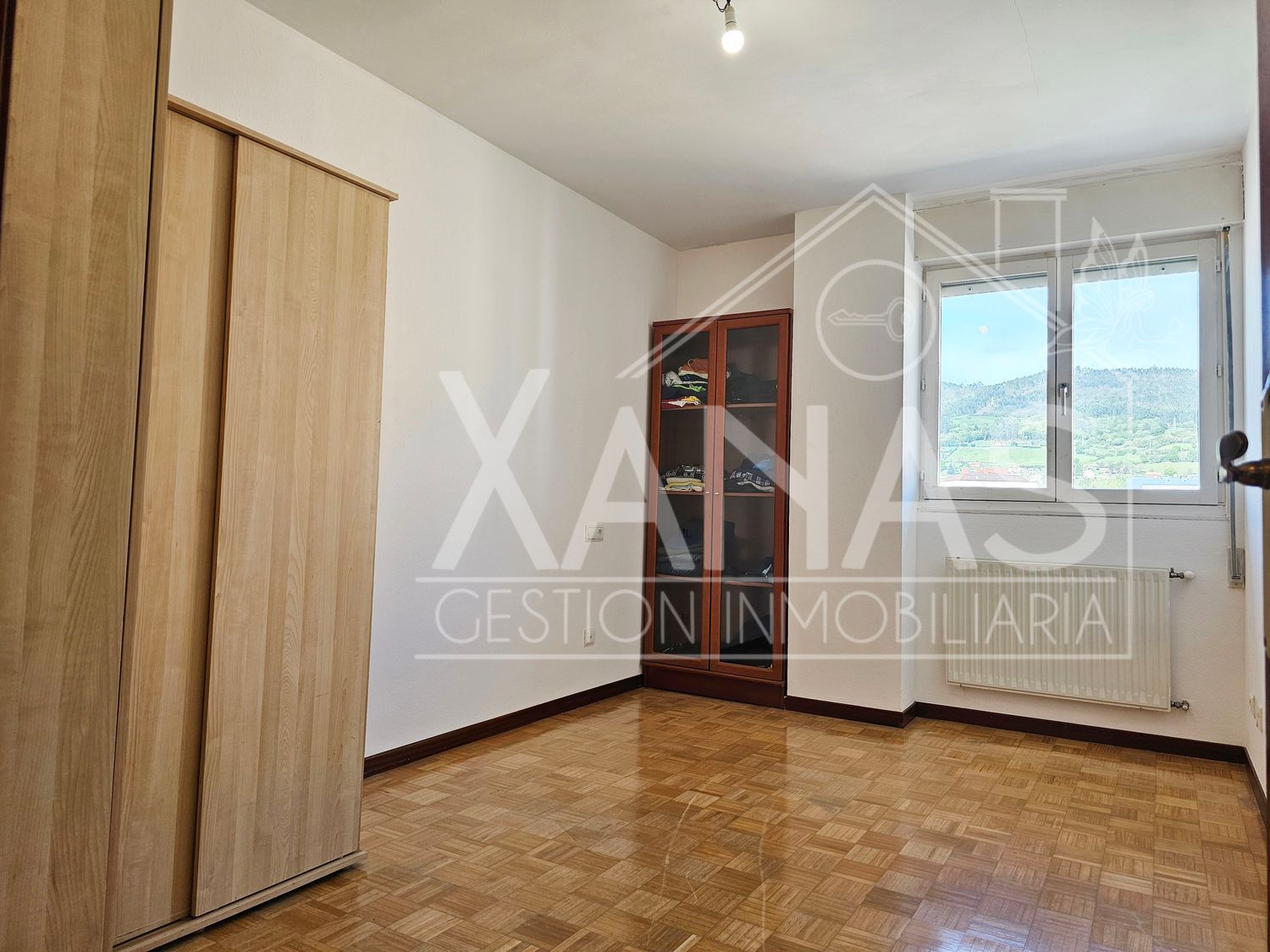 El pasillo nos lleva a sus tres dormitorios. Uno, el principal con armario empotrado, y mucha luz. Otros dos dormitorios más sencillos, de menor tamaño, y un cuarto de baño completo con ducha.