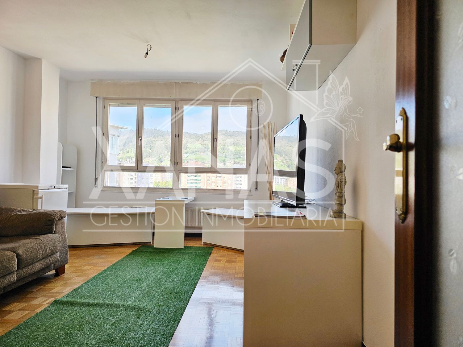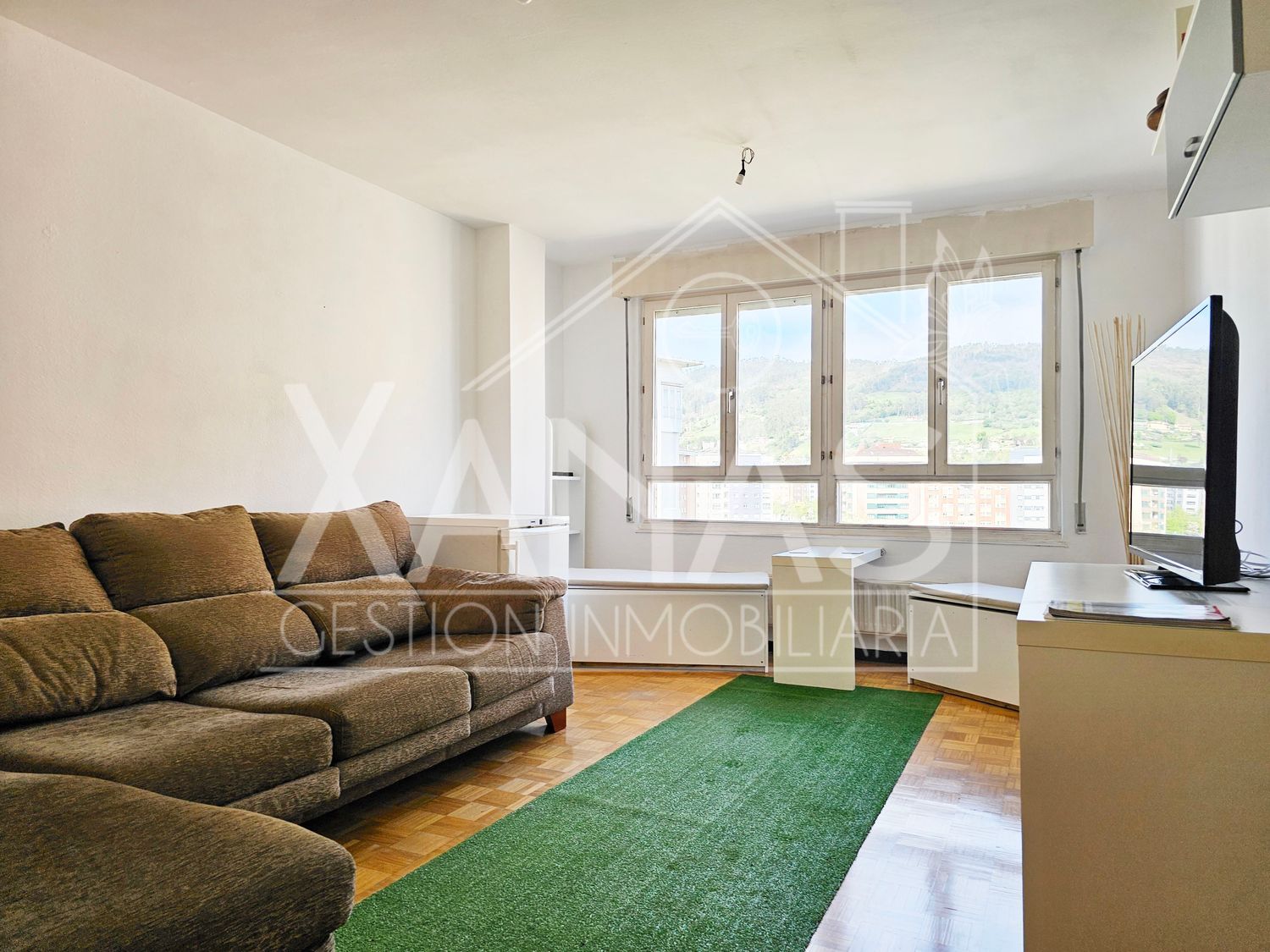 El recibidor nos invita a pasar y a la vez agrupa las estancias separando sutilmente la zona social, de la zona privada. Amplia, cómoda y con mucho espacio de almacenaje: la cocina, nos invita a asomarnos en su terraza a modo de tendedero, muy práctica para tener la lavadora y poder secar la ropa al aire. Un gran salón coronado con el ventanal que ocupa toda la pared con vistas al Naranco. Un aseo de cortesía que no podía faltar en la parte social de la casa.
